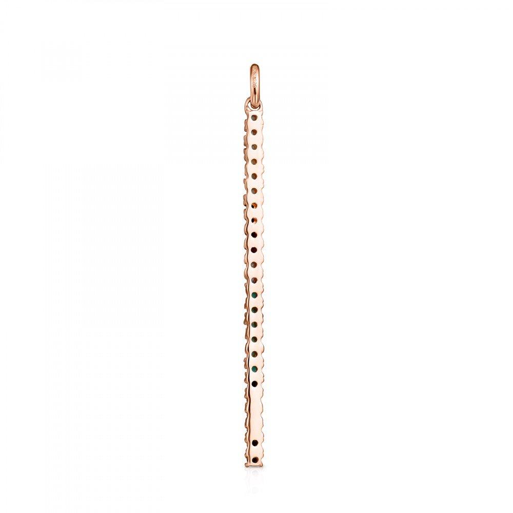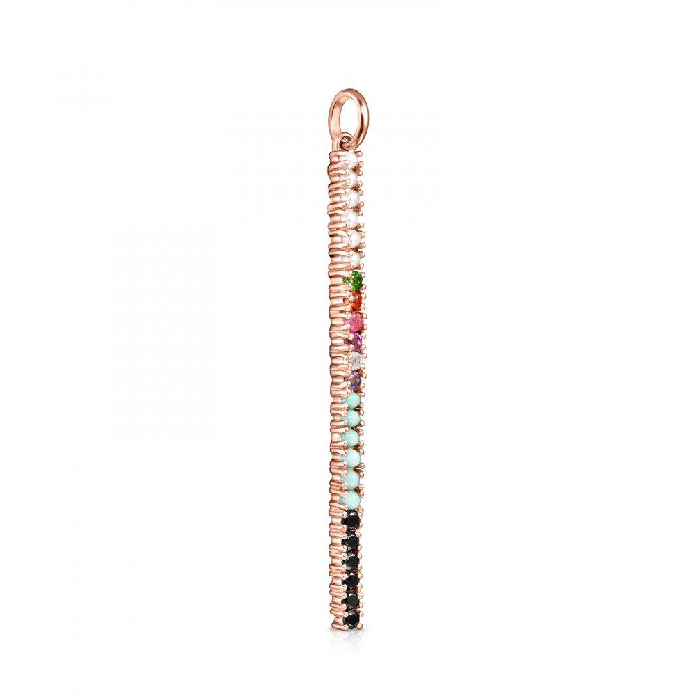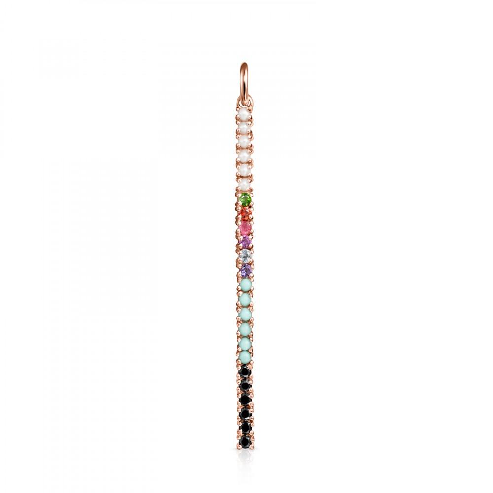 TOUS Straight bar pendant in rose gold vermeil with spinels, turquoise, pearls, tsavorite, orange sapphire, ruby, amethyst, blue topaz, iolite and peridot. Size: 5.5 cm. (Vermeil: Sterling silver plated with a layer of 18kt rose gold). This item does not include the chain.