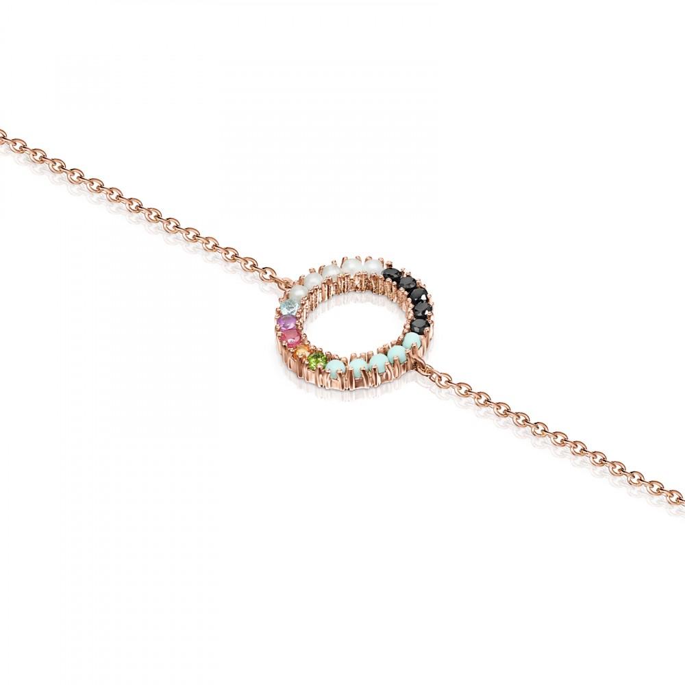 Tous Rose Gold Vermeil Straight disc Bracelet with Gemstones 912721500