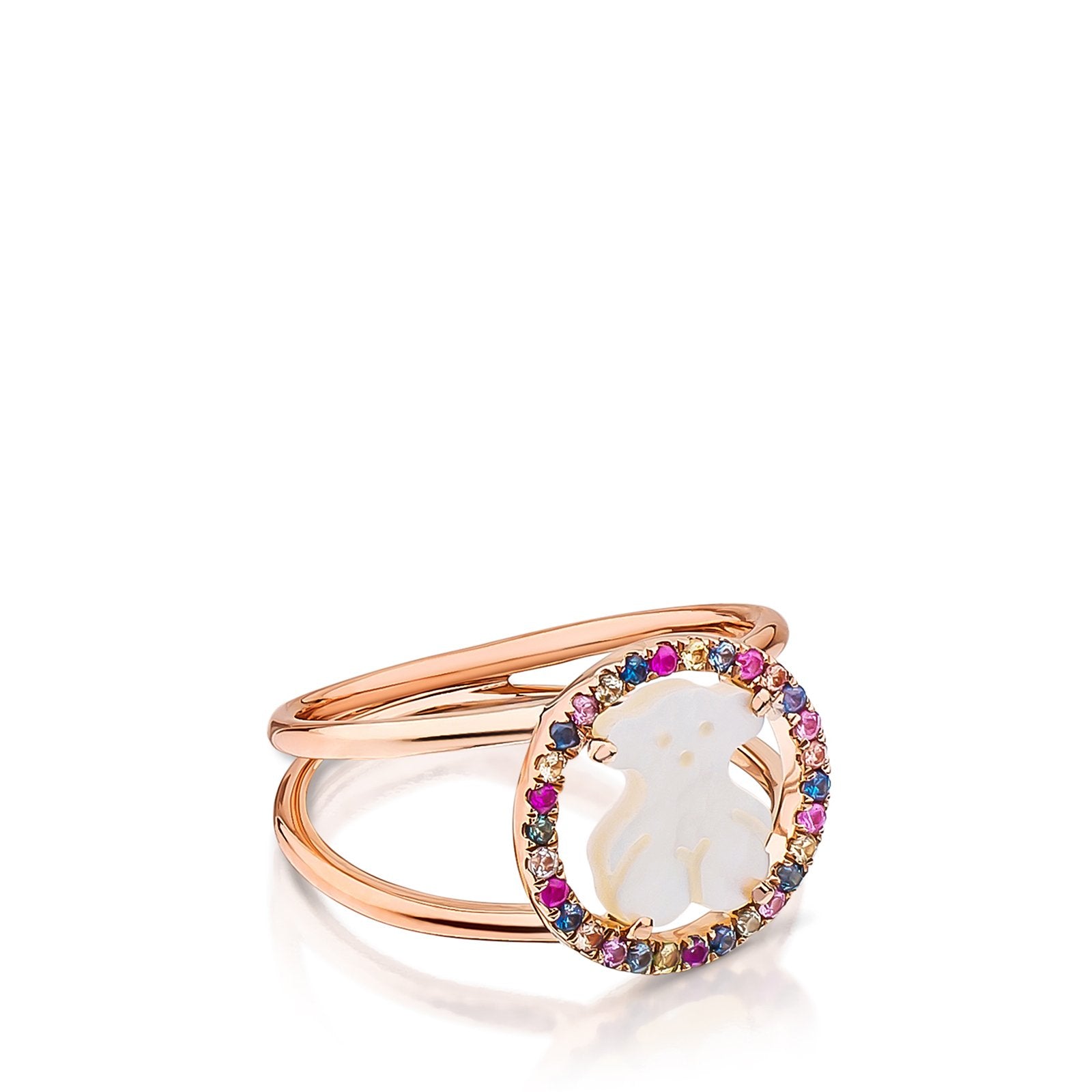 Tous Rose Vermeil Silver Camille Ring with Mother-of-Pearl and multicolored Sapphire 712165521