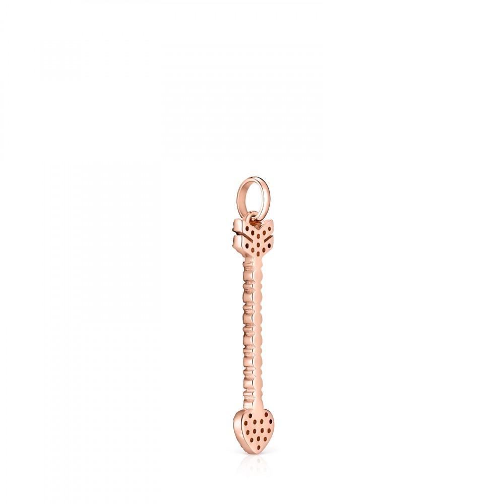 TOUS San Valentín arrow pendant in rose gold vermeil with rubies and spinels. Size: 3.1 cm. (Vermeil: Sterling silver covered with 18kt rose gold plating.) This item does not include the chain.
