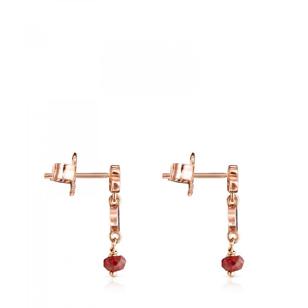 Tous Short rose Gold Vermeil Motif Earrings with Spinels and Ruby 914933590