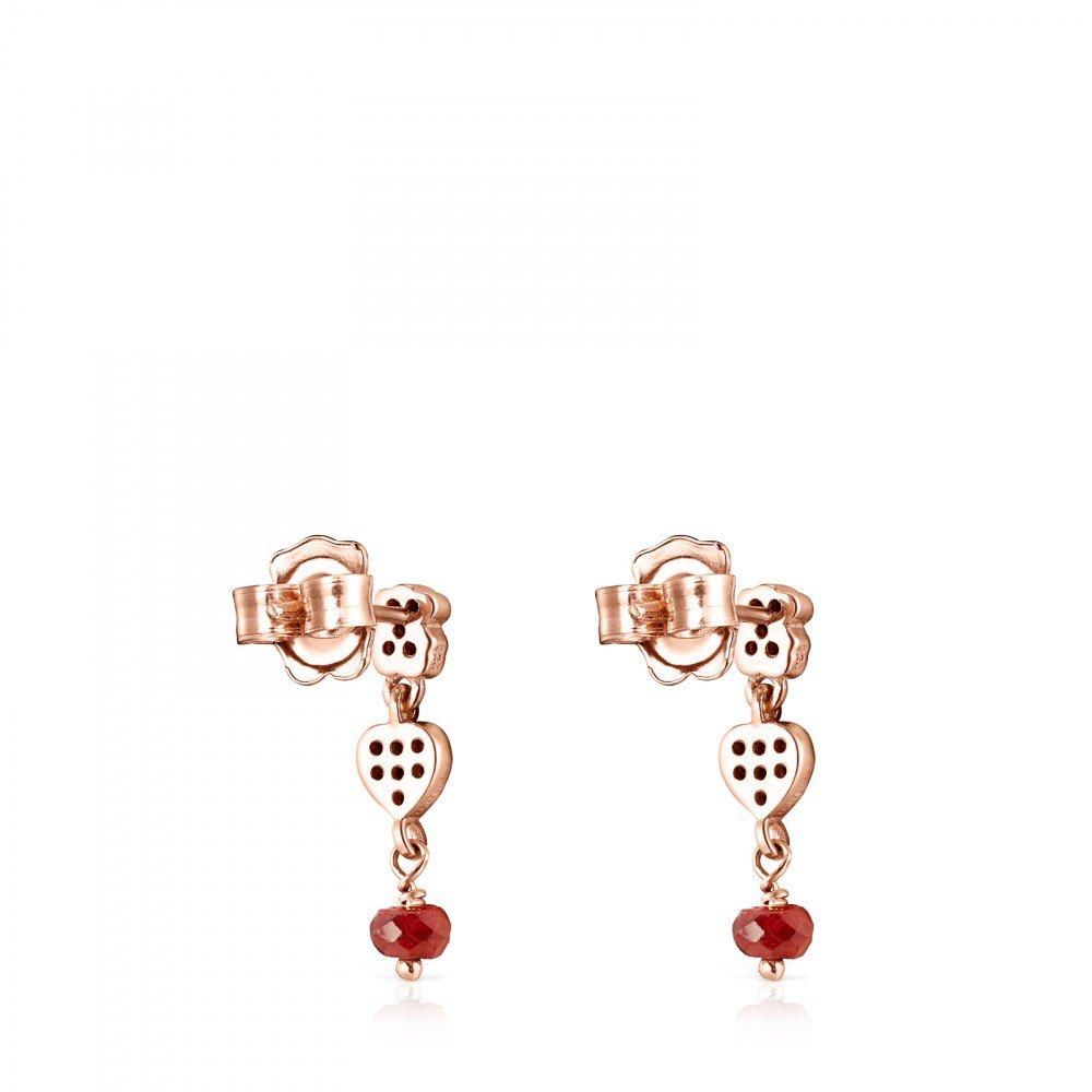 TOUS Motif earrings in rose gold vermeil with spinels and ruby. Push back. Size: 2 cm. (Vermeil: Sterling silver plated with a layer of 18kt rose gold.)
