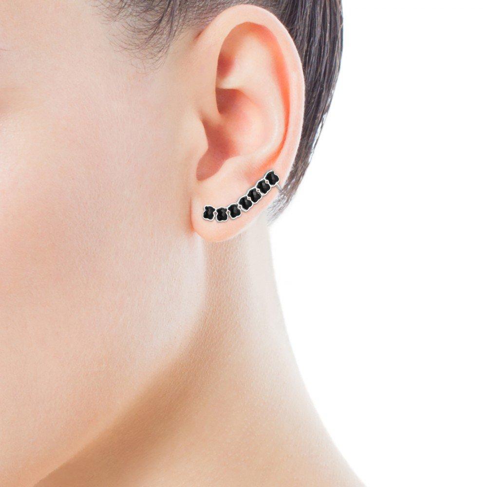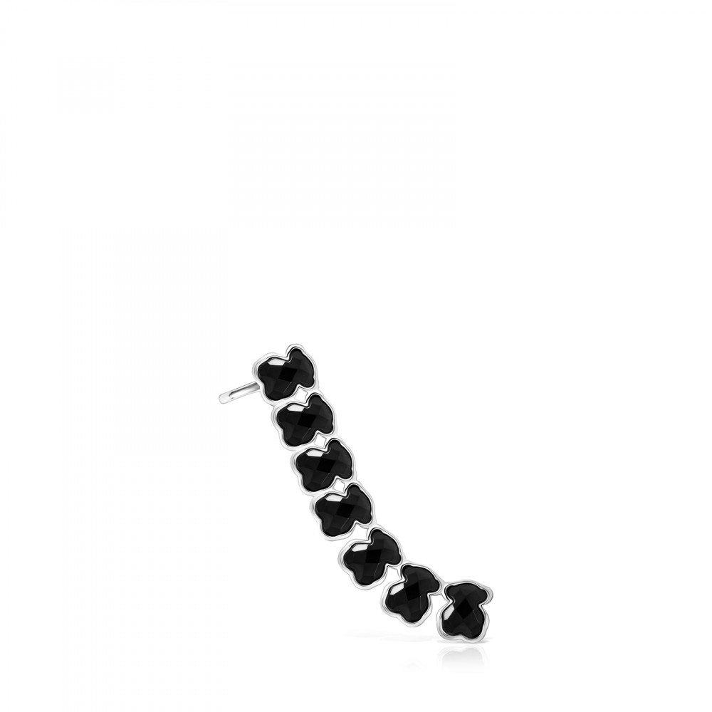 TOUS Mini Onix - Color 1/2 Earring in sterling silver with seven 0.4 cm onyx bears. Push back. Size: 3 cm.