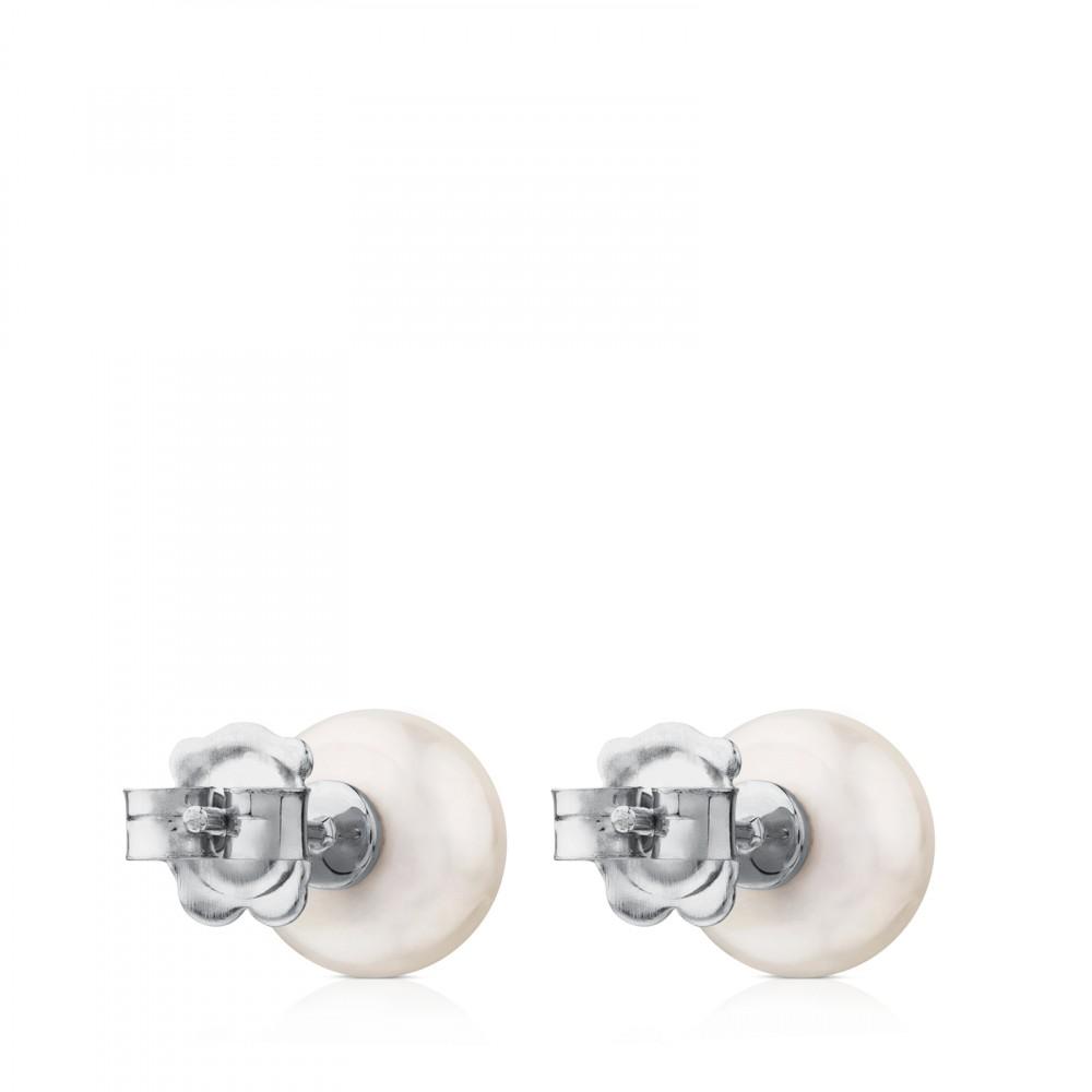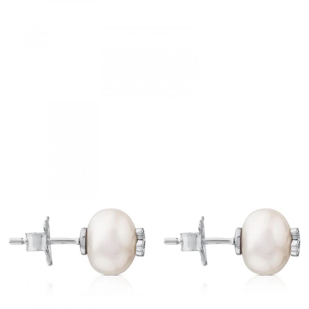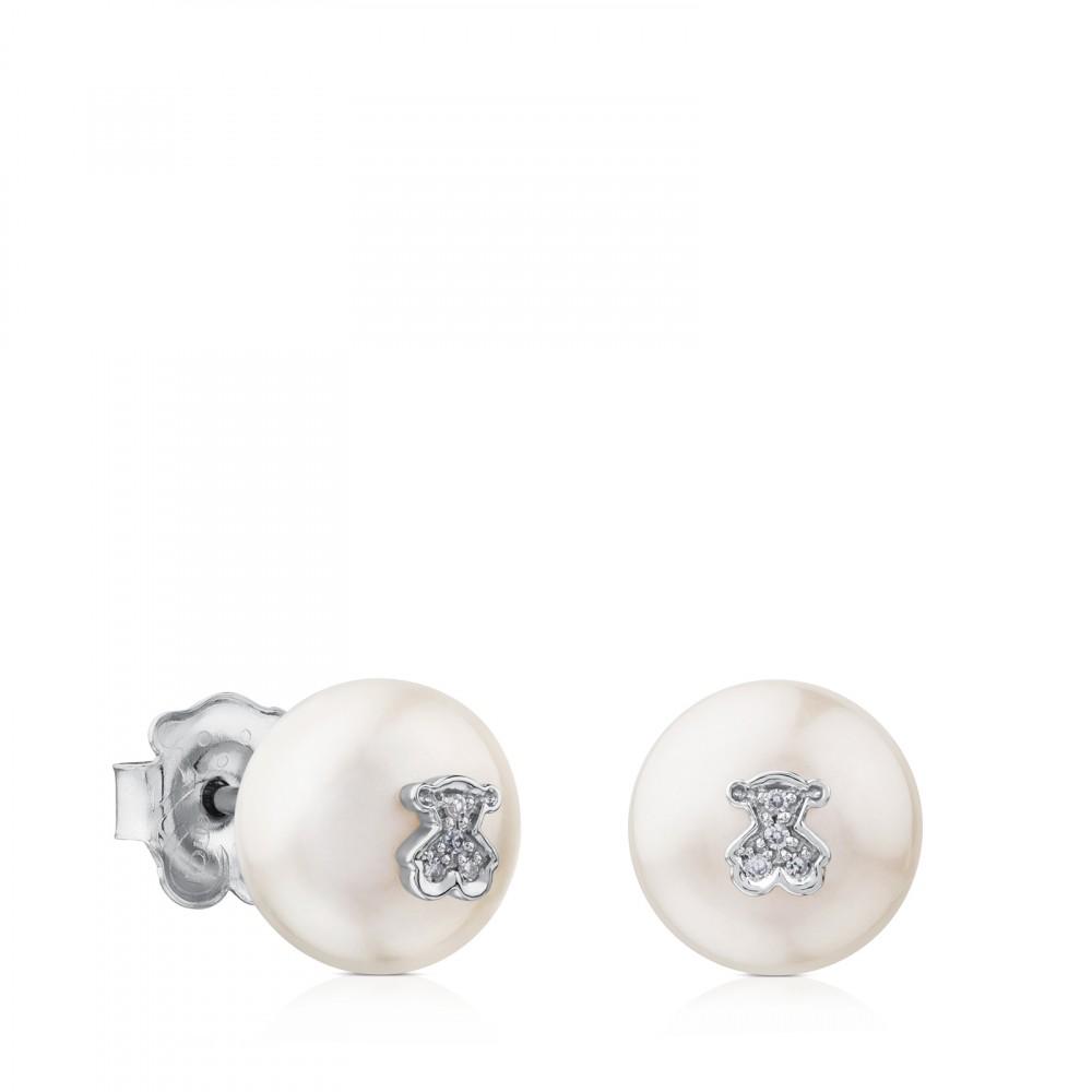 TOUS Puppies earrings in white gold with 0.02ct diamonds and 9.5-10mm pearls.