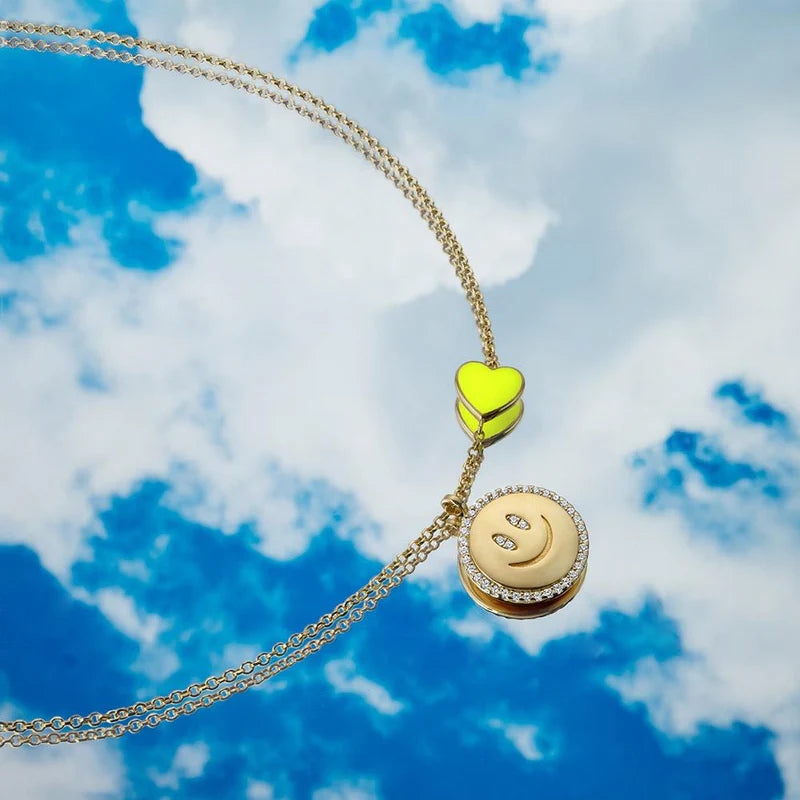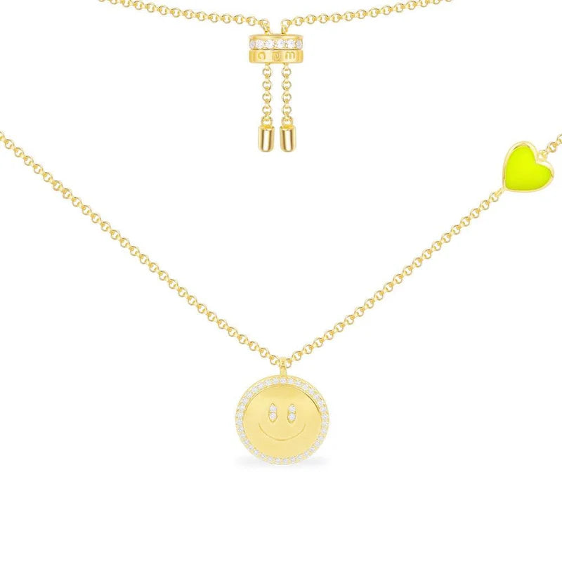 APM Adjustable Neon Yellow Heart & Happy Face Necklace Silver Gold-Plated AC5853XFYY