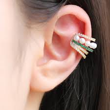 APM Monaco Earrings. SKU: AE11628MY. Apm Monaco Single Five-Hoop Ear Cuff With Pearls. This ear cuff is made with APM Yellow Alloy and 18k gold plated layer of 3 microns. It is paved with white zirconia stones and embellished with fresh water pearls. The APM Yellow Alloy is made of 95% recycled material. It is anti-tarnishing and anti-allergenic. This is a single earring, it is sold as 1 unit and doesn't come as a pair.