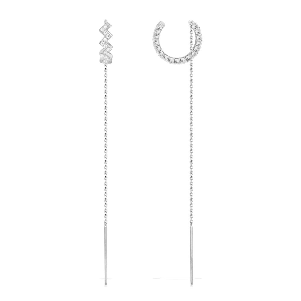 APM Silver Up and Down Earrings with Dropping Chains AE9989OX