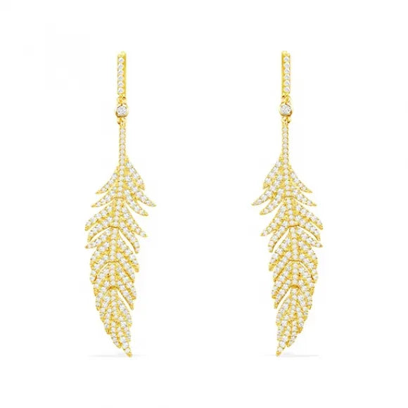 APM Sterling Silver Gold-Plated Feather Dropping Earrings AE11097OXY