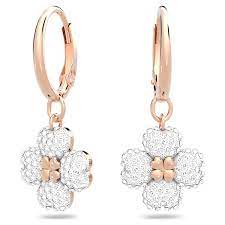 Inspired by flowers, this delicate pair of hoop earrings will add a sophisticated touch to your look. Displaying Swarovski's unique Pointiage® technique, it shimmers with white and pink crystals set against rose gold-tone plating with matching hoops. Style yours with other pieces from the Latisha Family for maximum brilliance.