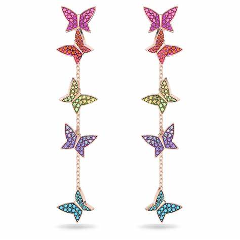 Lilia drop earrings Butterfly, Long, Multicoloured, Rose gold-tone plated 5636425