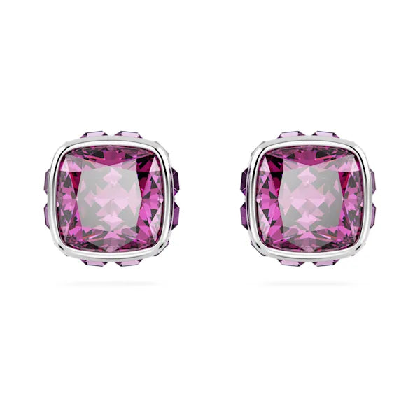 Swarovski Birthstone stud earrings Square cut, February, Purple, Rhodium plated 5660797