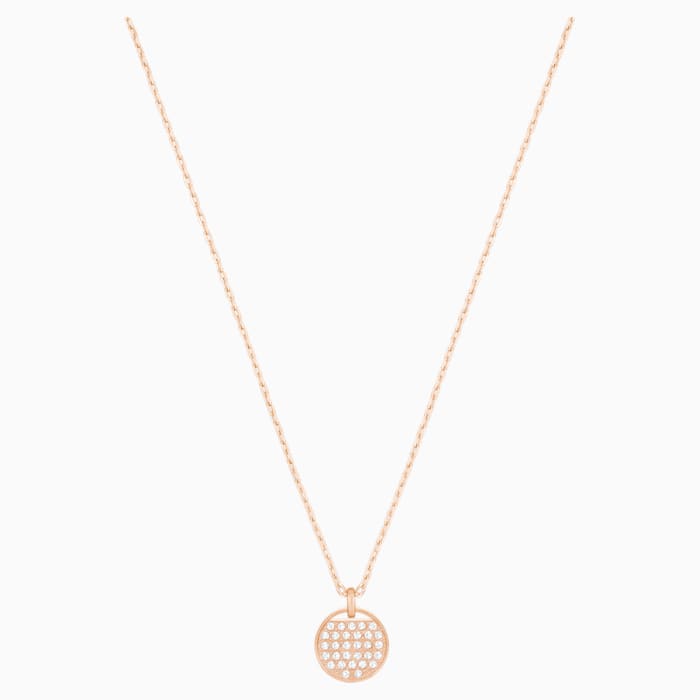 Elegant and easy-to-wear, this circle pendant is perfect for mixing and matching with other styles of different lengths for an on-trend multi-layered look. It features a disc embellished with sparkling crystal pavé, which dangles from a delicate rose gold-plated chain.