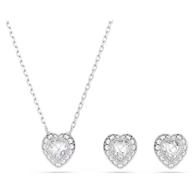 This Swarovski jewellery set is a match made for romance. The rhodium plated combination includes a pendant and a pair of delicate studs, each crafted with a heart-shaped crystal and surrounded by a glittering halo of clear pavé. Gift this light-reflecting set to someone you love as a sign of your affection.