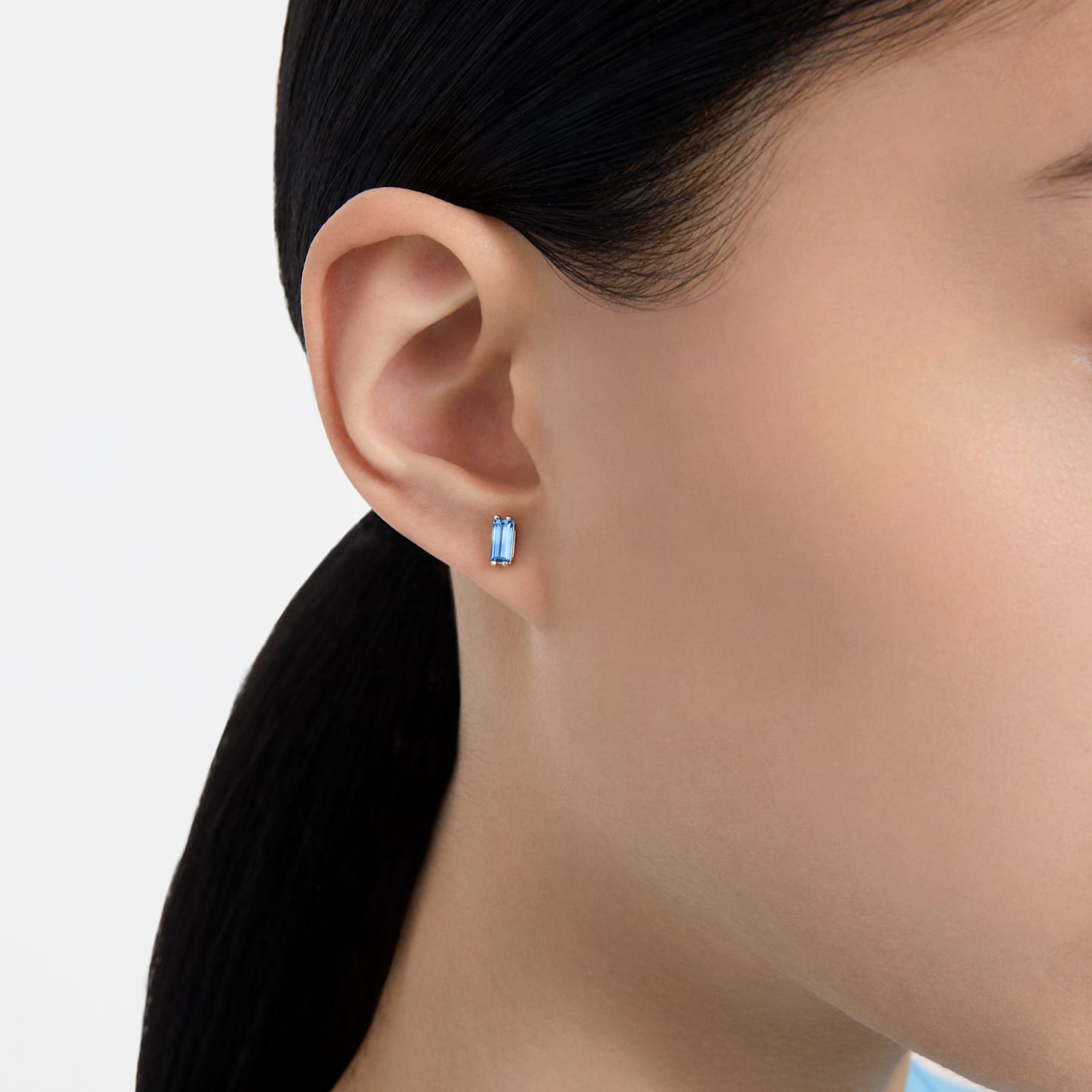 Swarovski Stilla stud earrings Cushion cut, Blue, Rhodium plated 5639132