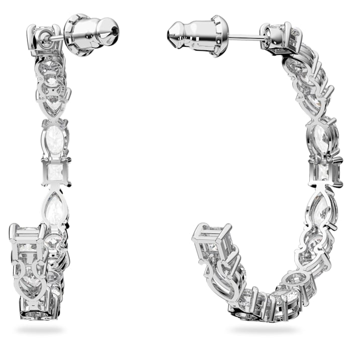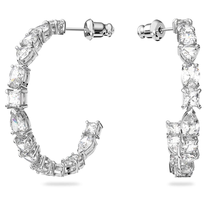 This pair of pierced earrings by Swarovski is characterized by simple silhouettes and resplendent elegance. Each hoop is formed by a row of gleaming white stones, expertly cut into sparkling, faceted round, square, trillian, and drop shapes. A timeless addition to your everyday look, these earrings are easy to combine with matching pieces of jewelry. A beautiful gift giving idea.