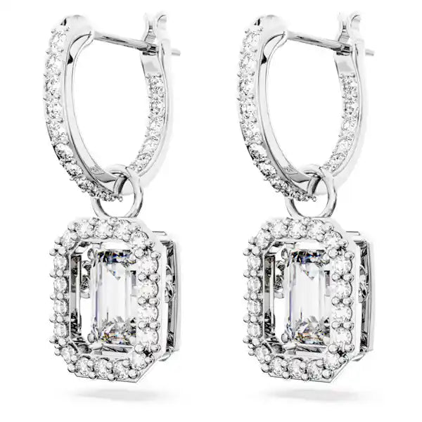 Swarovski Una drop earrings Octagon cut, White, Rhodium plated 5638495