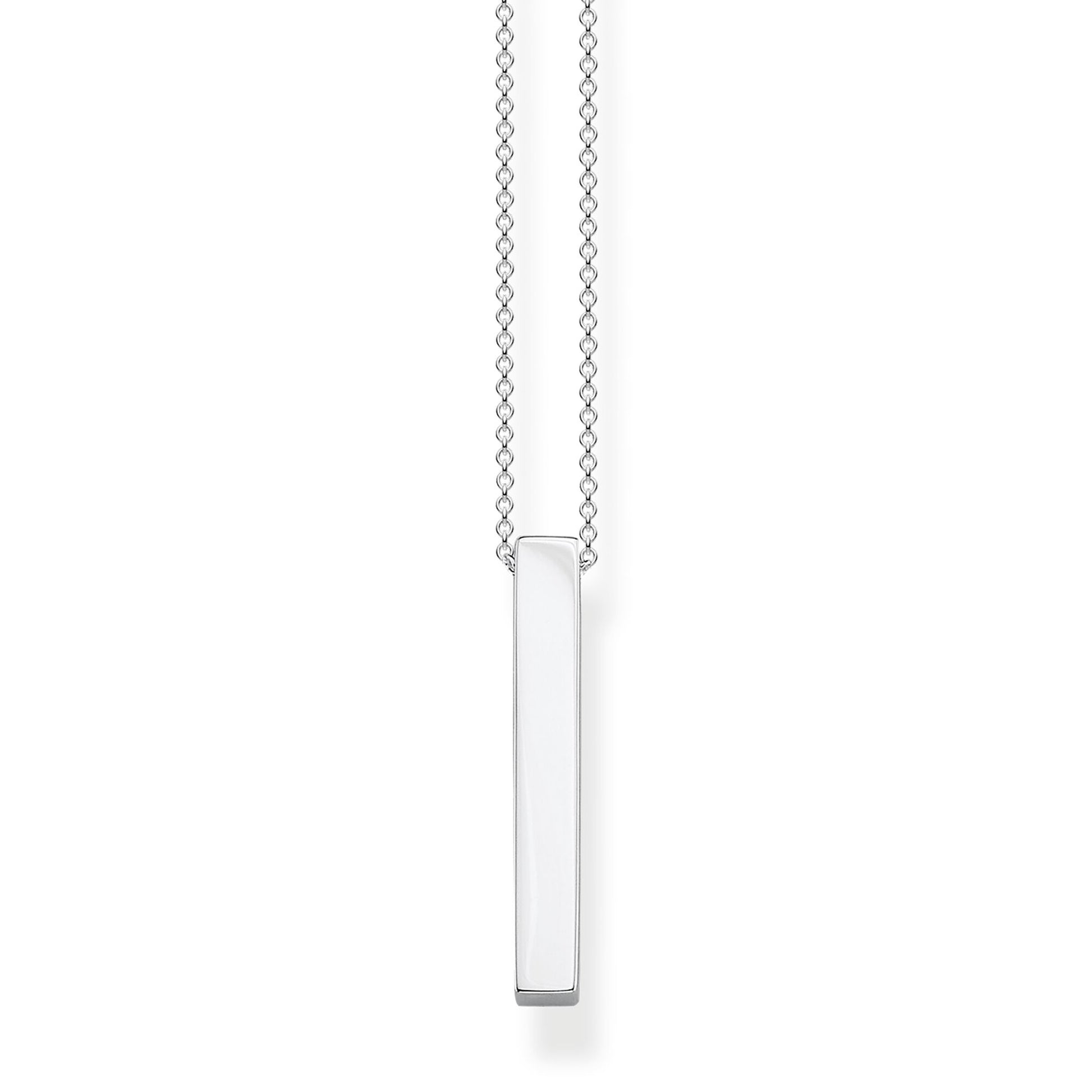 Necklace with simple, solid silver pendant with rectangular outline. The graphic, modern design can be engraved on all four sides with a personal message (multi-sided engraving only possible in our retail shops).