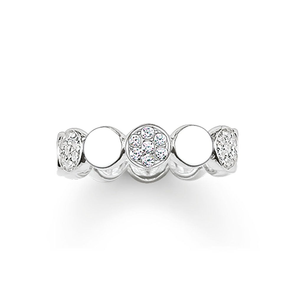From the Thomas Sabo Glam & Soul jewellery collection, this dress ring is pave set with white cubic zirconia mounted in sterling silver, in alternating plain and stone-set bubble design.