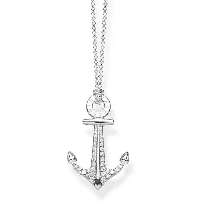 Thomas Sabo Silver Stone Set Anchor Necklace KE1852-051-14-l45v