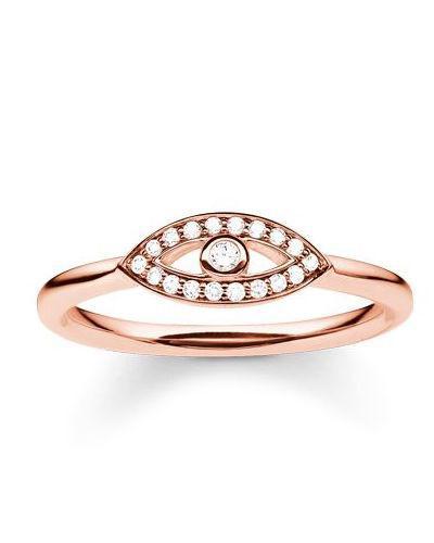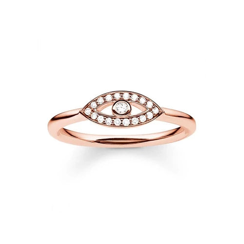 Express your style and individuality with this eye catching 18k rose gold plated sterling silver ring from THOMAS SABO. Its opulent Nazar Eye inspired motif is set with sparking Cubic Zirconia, perfect for adding a unique edge to any outfit.